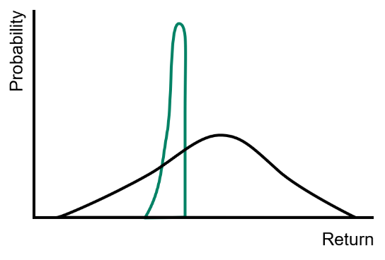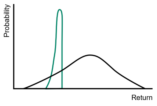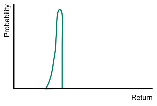 In the last few months, I’ve been drawing probability distributions to illustrate the fundamental difference between the potential returns from ownership assets and debt (or “fixed income,” “credit,” or whatever you want to call it). Here’s the general shape of the curve describing the potential return on a portfolio of ownership assets (Figure 1):