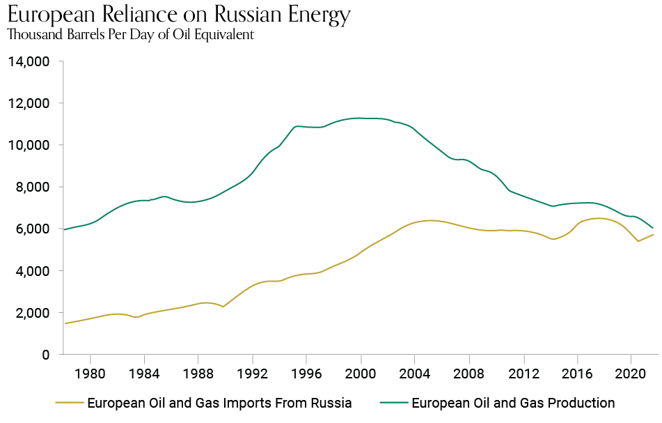 The first item on the agenda for Brookfield’s board meeting was, naturally, the tragic situation in Ukraine. We talked about the many facets of the problem, ranging from human to economic to military to geopolitical. In my view, energy is one of the aspects worth pondering. The desire to punish Russia for its unconscionable behavior is complicated enormously by Europe’s heavy dependence on Russia to meet its energy needs; Russia supplies roughly one-third of Europe’s oil, 45% of its imported gas, and nearly half its coal.